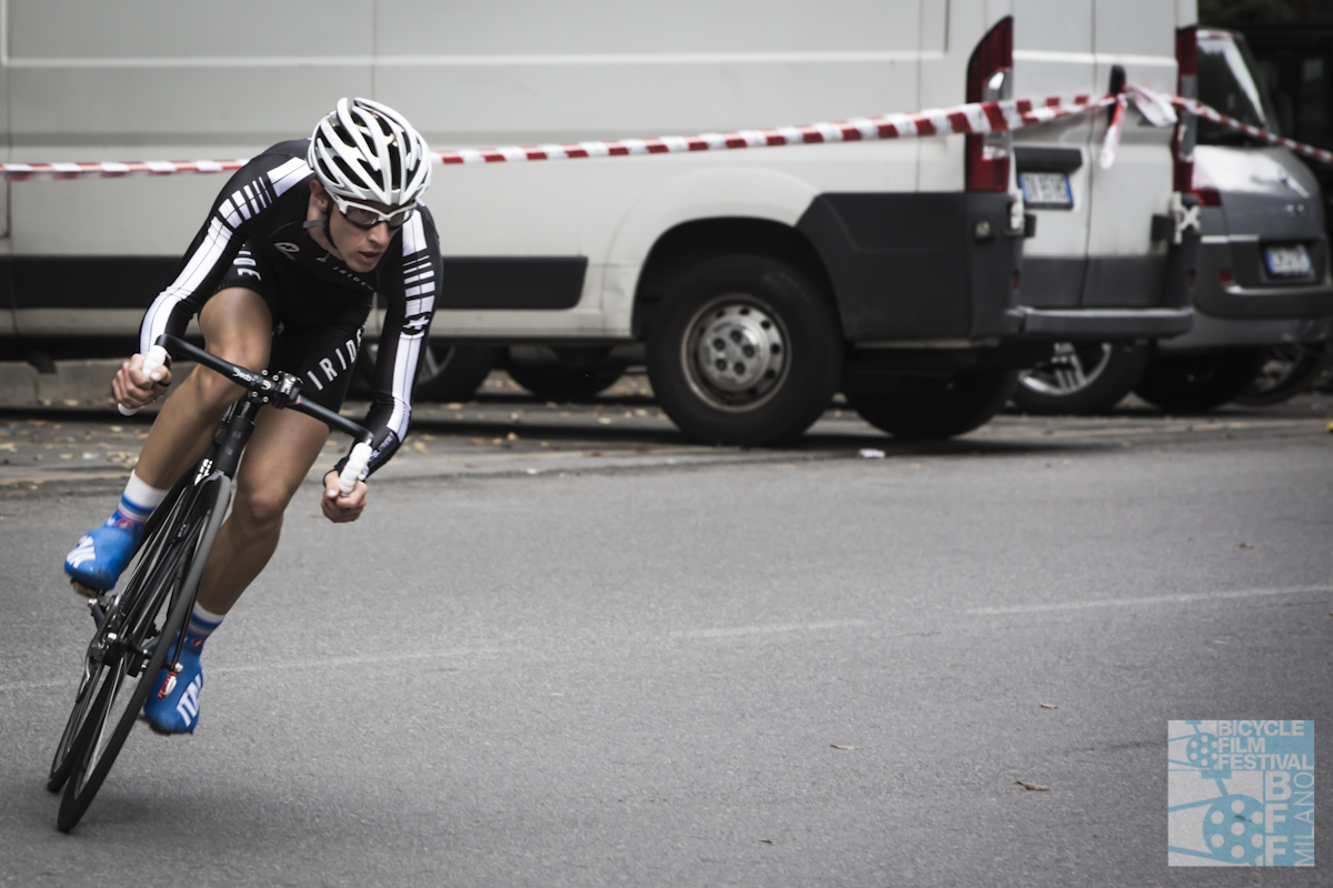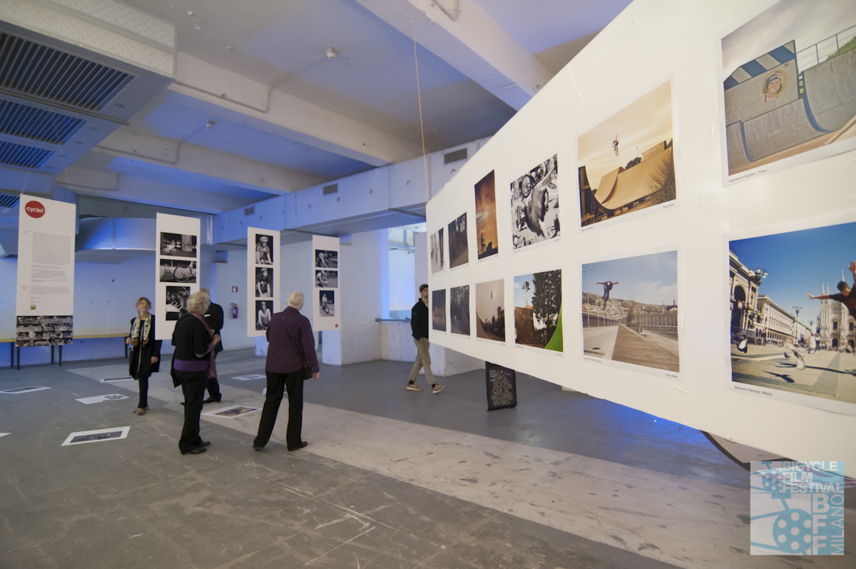 A corredo della eccellente installazione abbiamo potuto ammirare l’esposizione fotografica di Francesco Rachiello che con tredici immagini emozionanti ha anticipato lo spirito che si sarebbe poi respirato la domenica con la RedHook Criterium. Quattro fotografi spettacolari hanno dato visione di quello che si può ottenere con una camera, un flash, una rampa e una bici da BMX. 10 modi di vedere la bici, contestualizzata a trecentosessantagradi, l’altra esposizione che calpestava i 2.500 metri quadri dello Spazio A Ex Ansaldo. Per chiudere poi con il Kilometro Violento di Cycle Magazine.