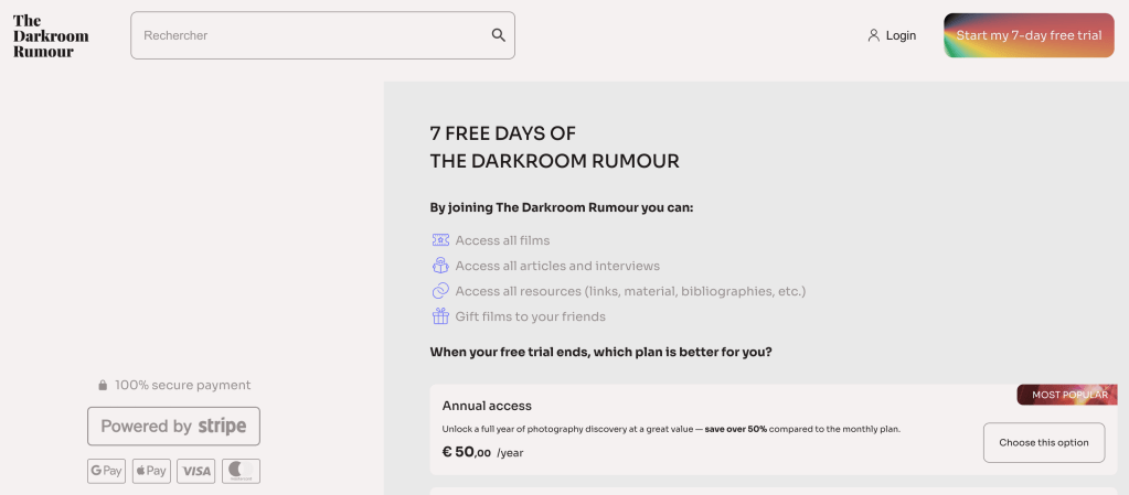 The Darkroom Rumors è una piattaforma streaming (in inglese e francese) dedicata alla fotografia. Un concentrato di fotografi, momenti, situazioni e non solo. Un posto dove potete ampliare la vostra conoscenza e alimentare la vostra visione, con il supporto di chi, nel tempo, ha fatto la storia della fotografia.