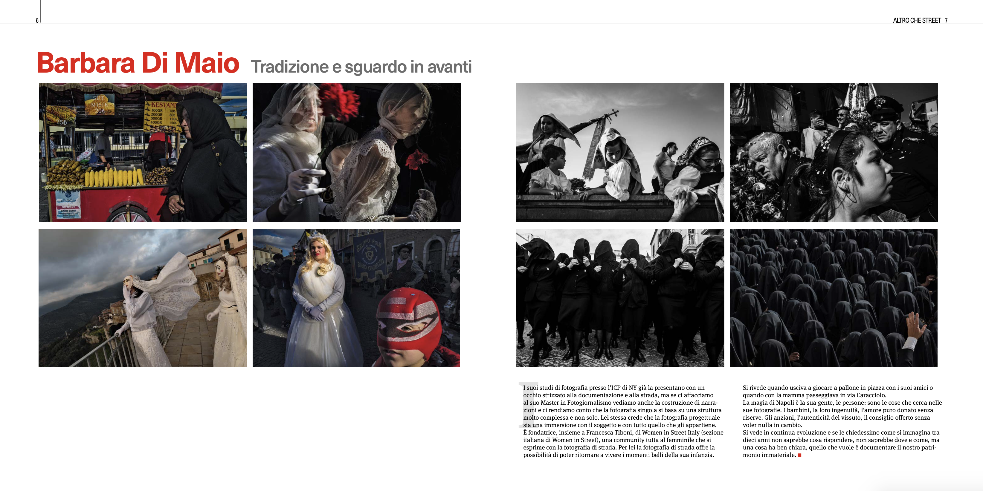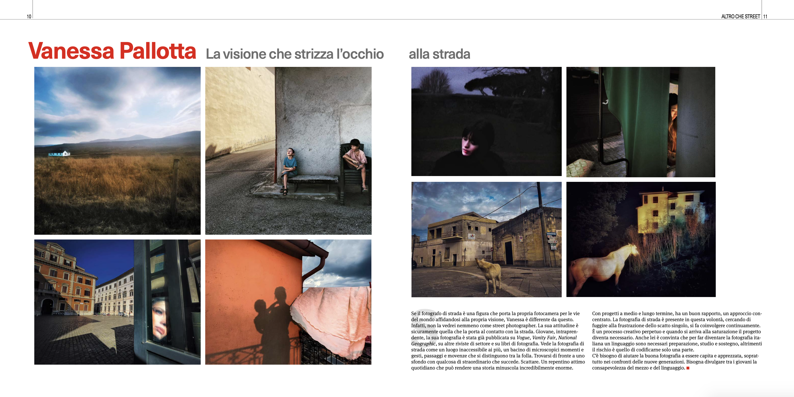 Per lei la fotografia di strada è la possibilità di poter ritornare a vivere i momenti belli della sua infanzia. Si rivede quando usciva a giocare a pallone in piazza con i suoi amici, quando con la mamma passeggiava in Via Caracciolo. La magia di Napoli è la sua gente, le persone, sono quelle le cose che cerca nelle sue fotografie. I bambini, la loro ingenuità, l’amore puro donato senza riserve. Gli anziani, l’autenticità del vissuto, il consiglio offerto senza voler nulla in cambio.