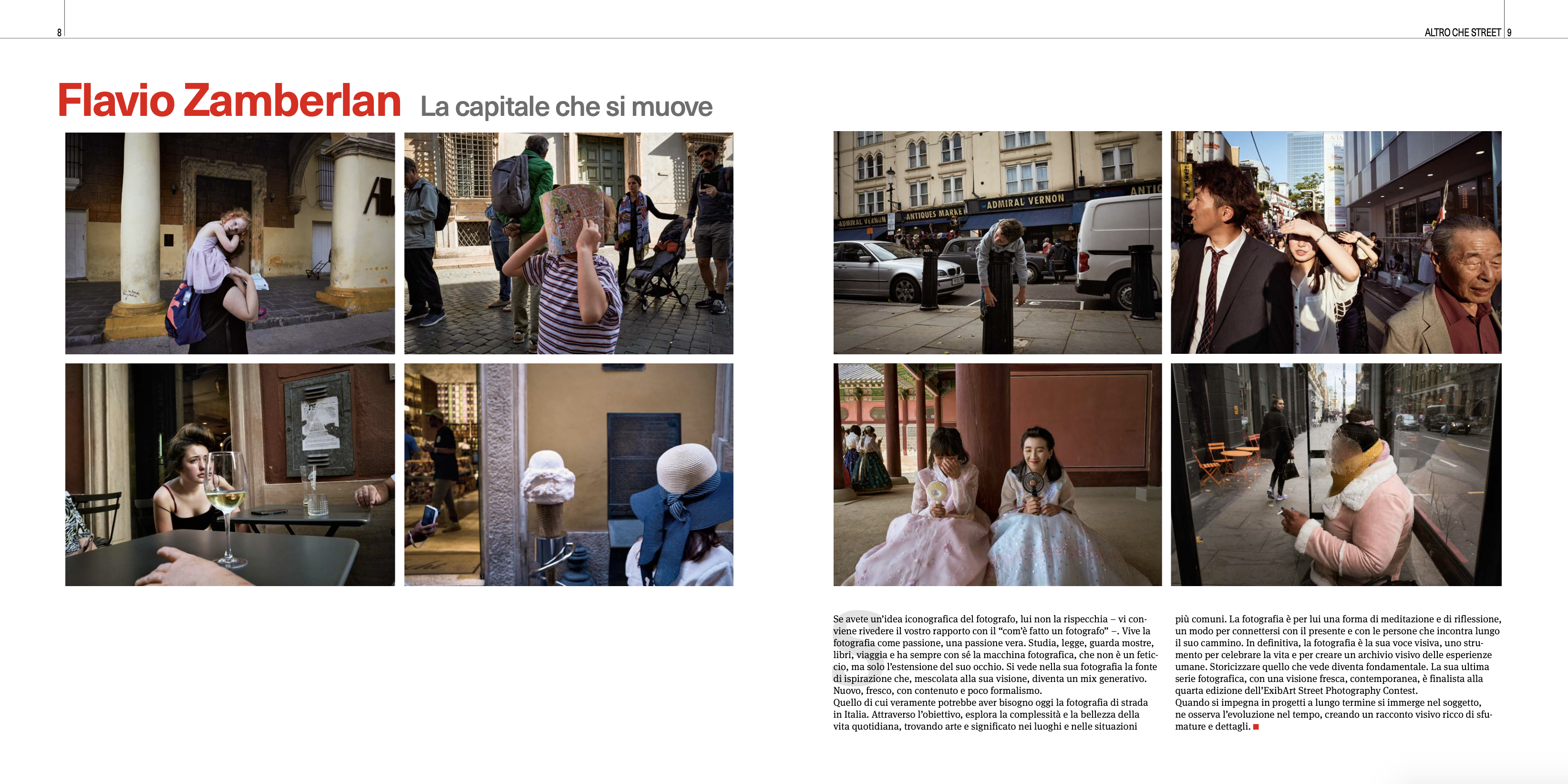 Vede la fotografia di strada come un luogo inaccessibile ai più, un bacino di microscopici momenti e gesti, passaggi e movenze che si distinguono tra la folla.