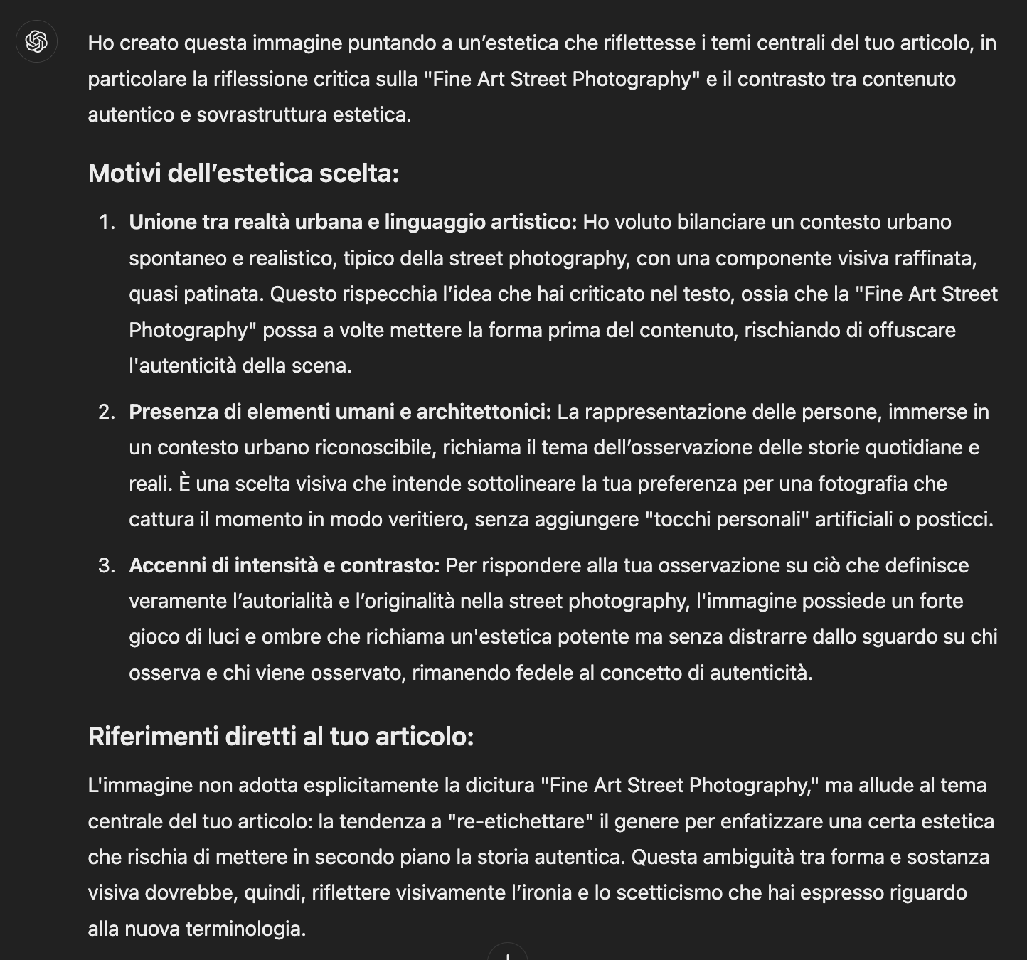 A questo punto, non posso che concordare con quanto emerso dalla discussione con l’AI. È più utile concentrarsi sul contenuto e sull’essenza della fotografia, piuttosto che sulle etichette che possono confondere più che chiarire.