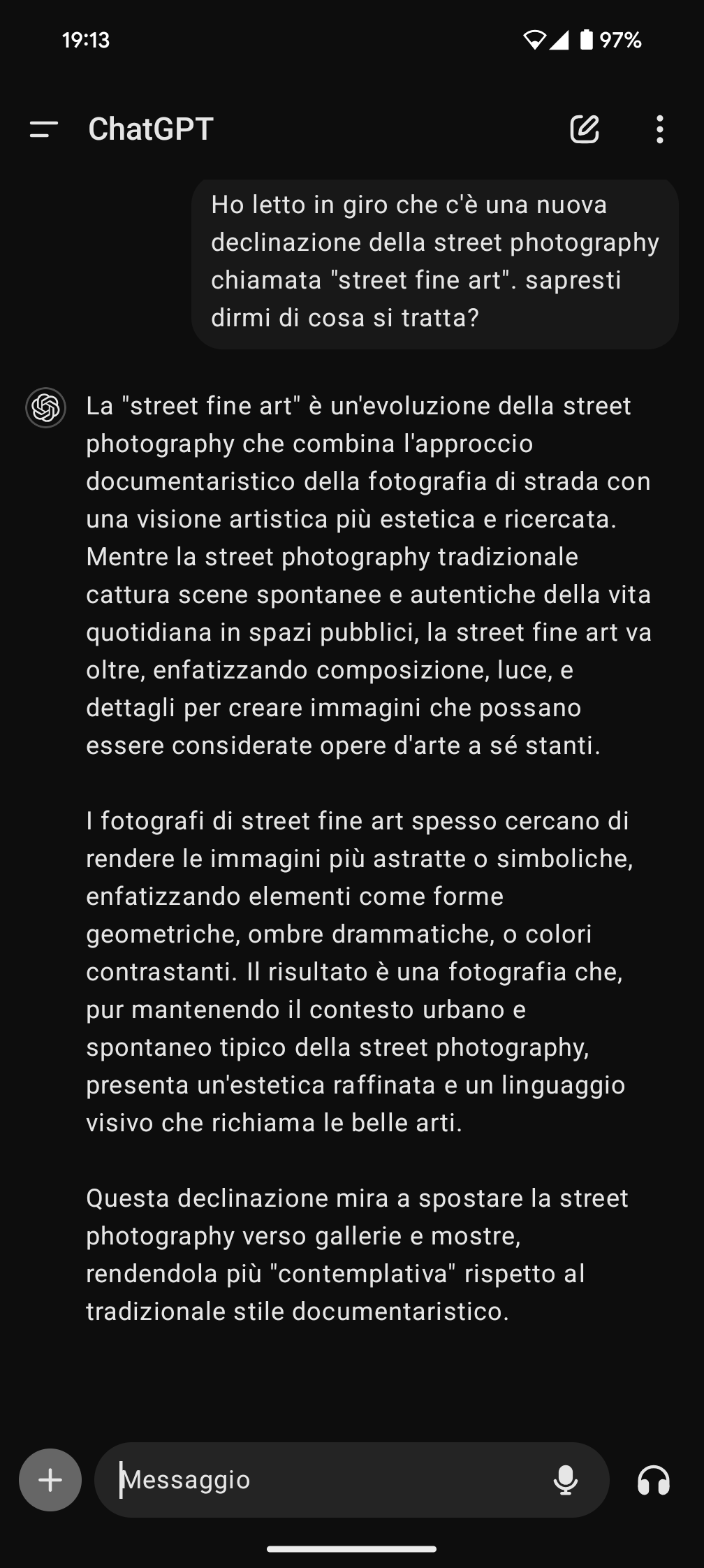 “Ho letto che c’è una nuova declinazione della street photography chiamata ‘street fine art’. Di cosa si tratta?”