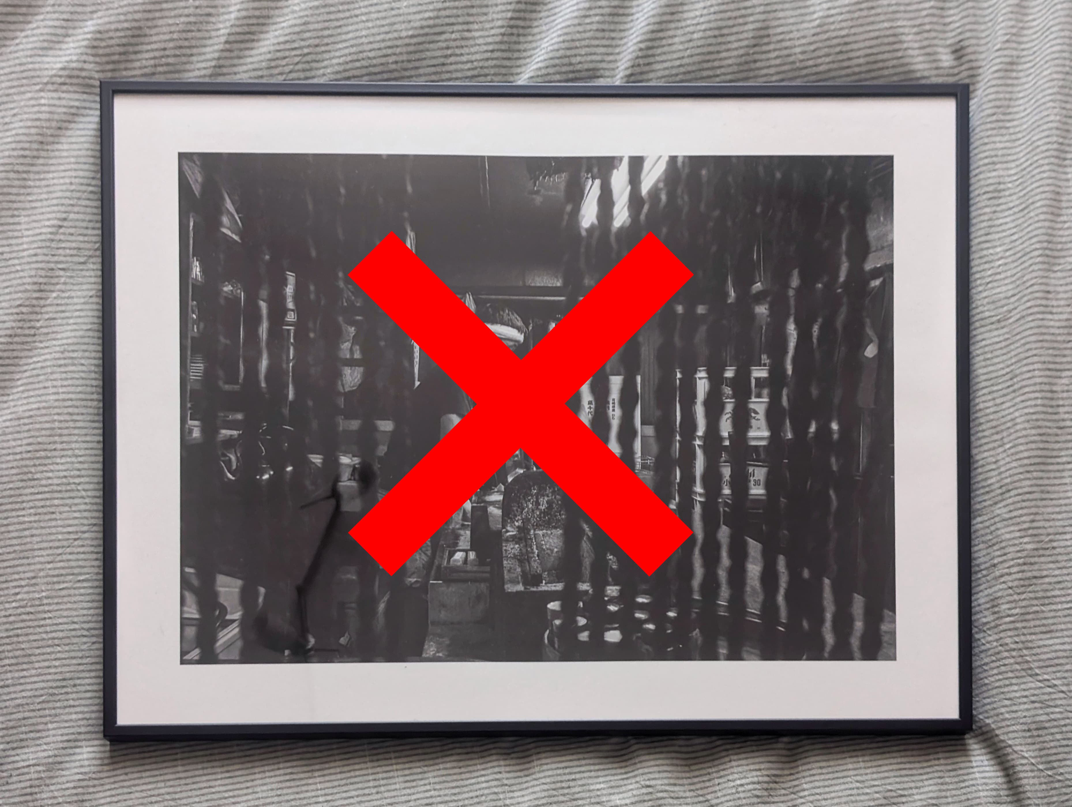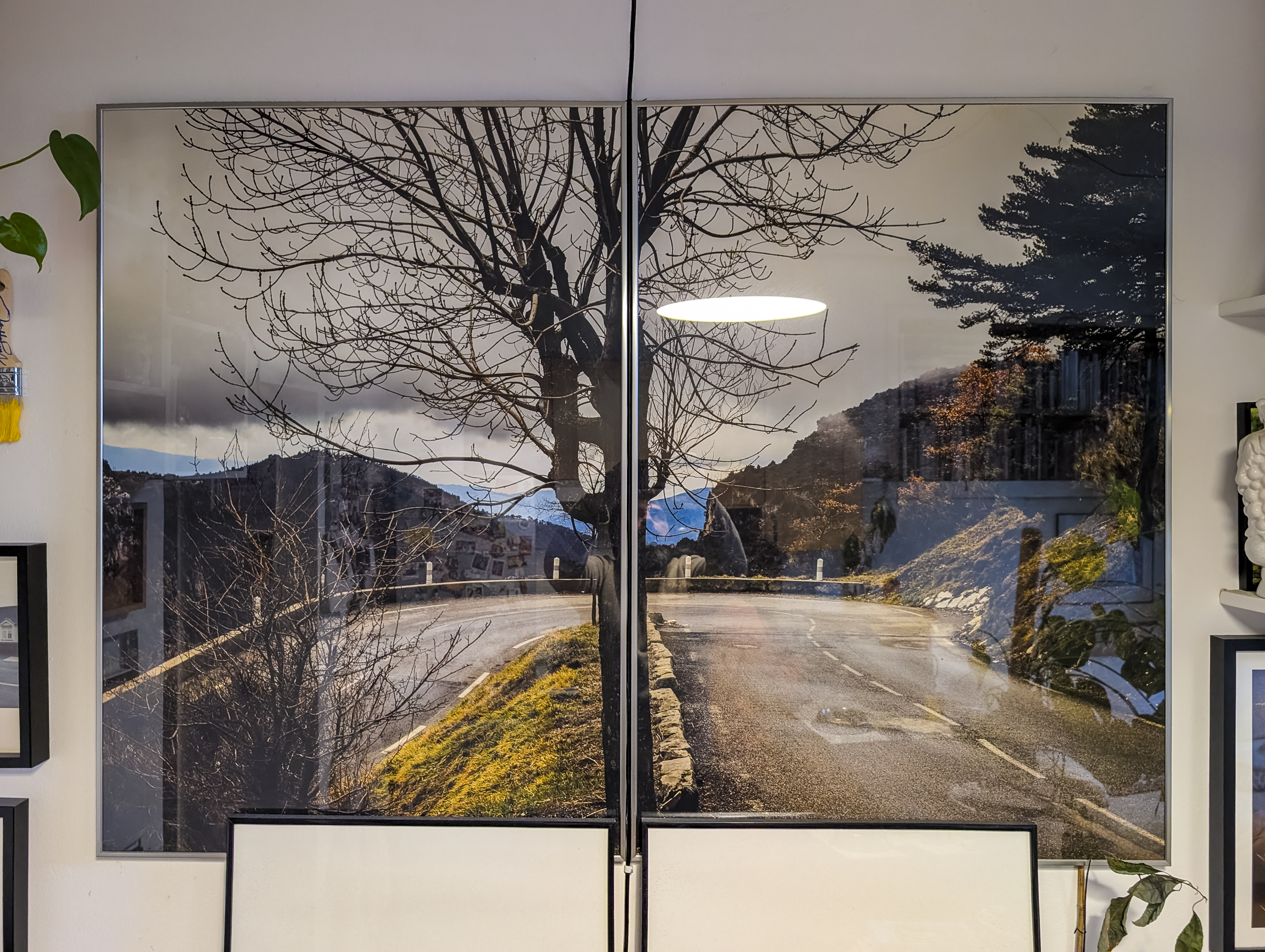 Una stampa su carta Hahnemuhle Photo Rag Baryta da 315 gr, vetro antiriflesso, cornice in alluminio nera, dimensione 80×60.
