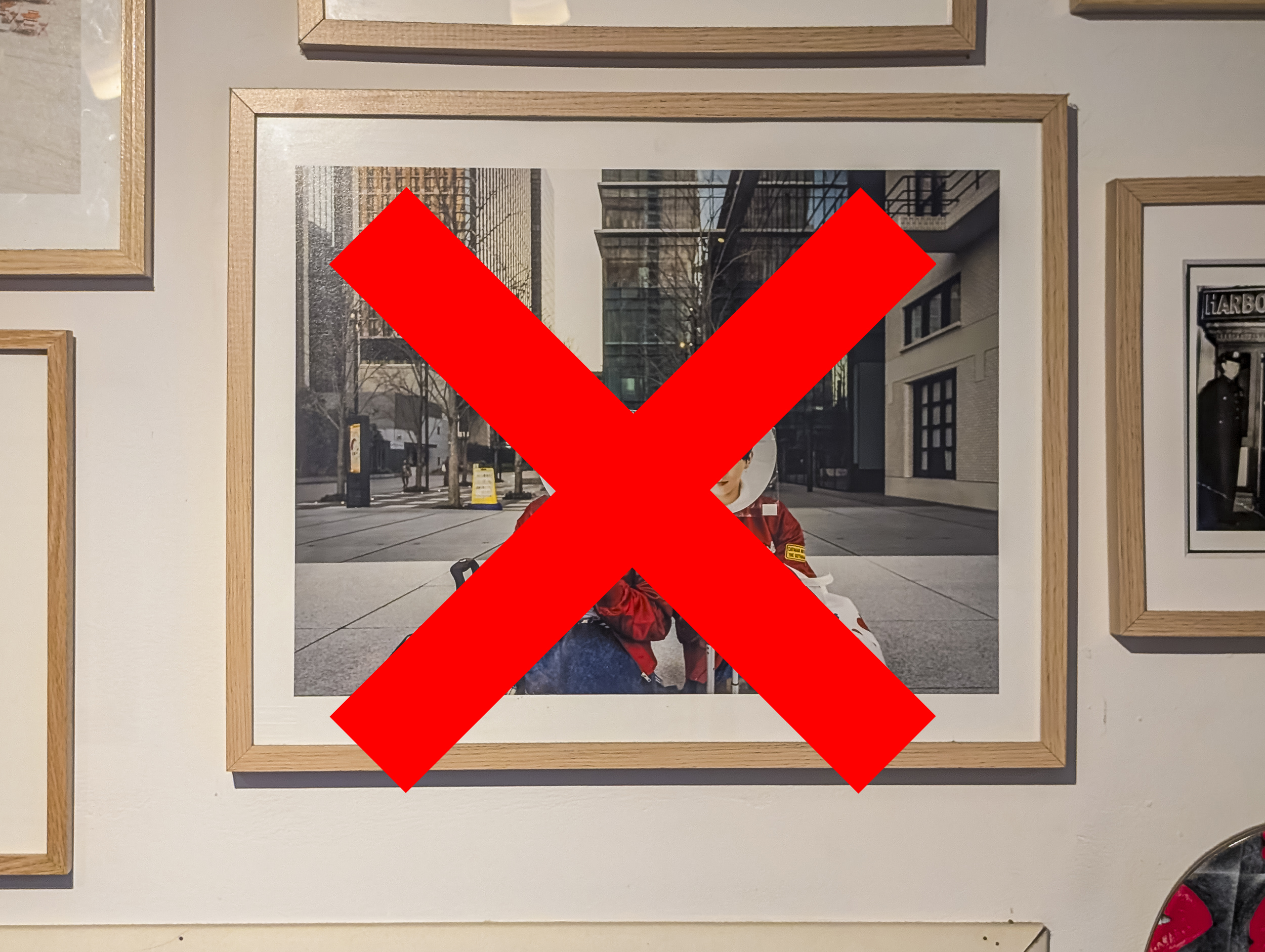 Una stampa su carta Hahnemuhle Photo Rag Baryta da 315 gr, cornice in rovere e vetro antiriflesso, dimensione 50×40.